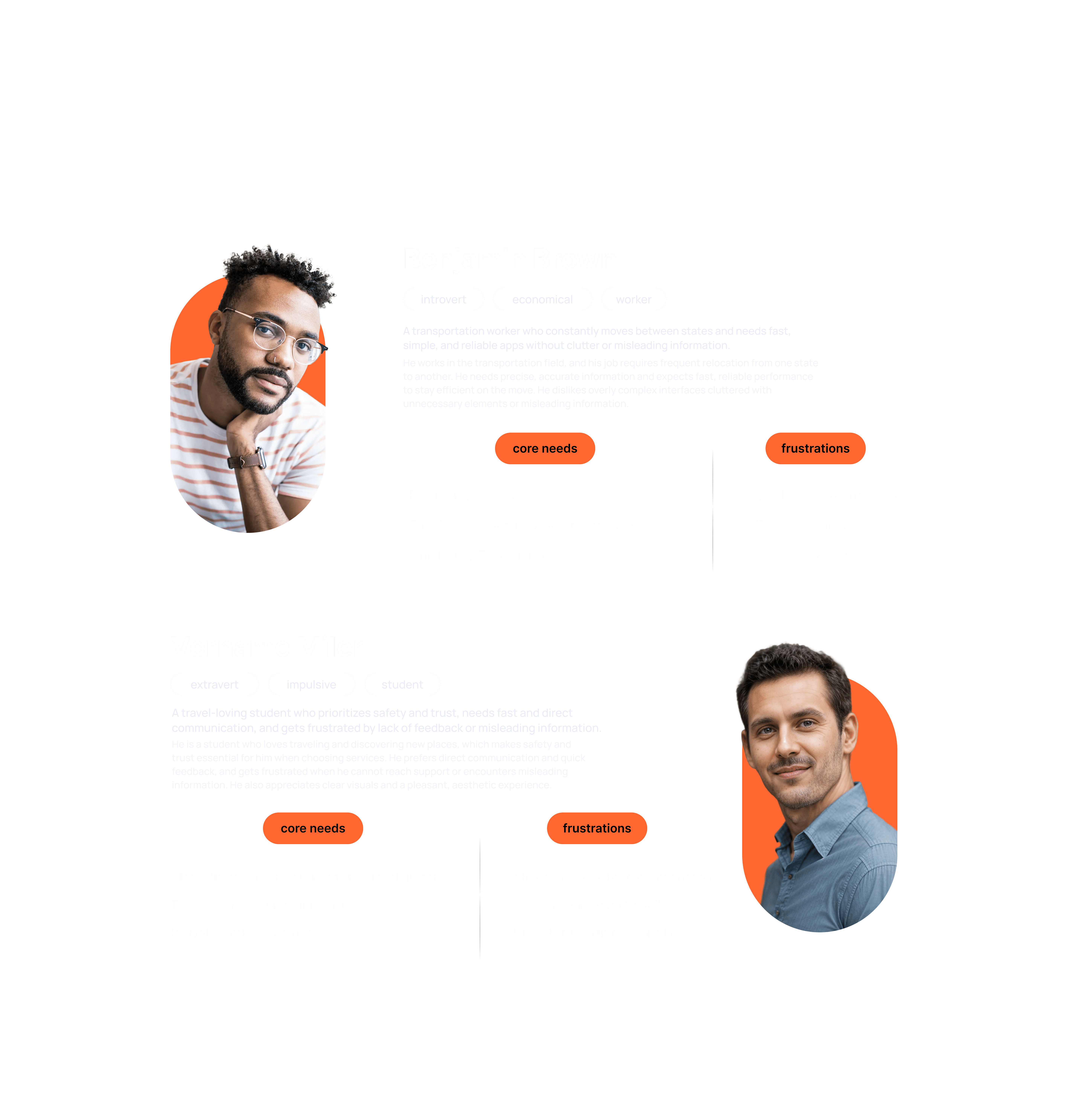 Representative profiles that reflect key user goals, behaviors, motivations, and challenges, used to guide informed design decisions.