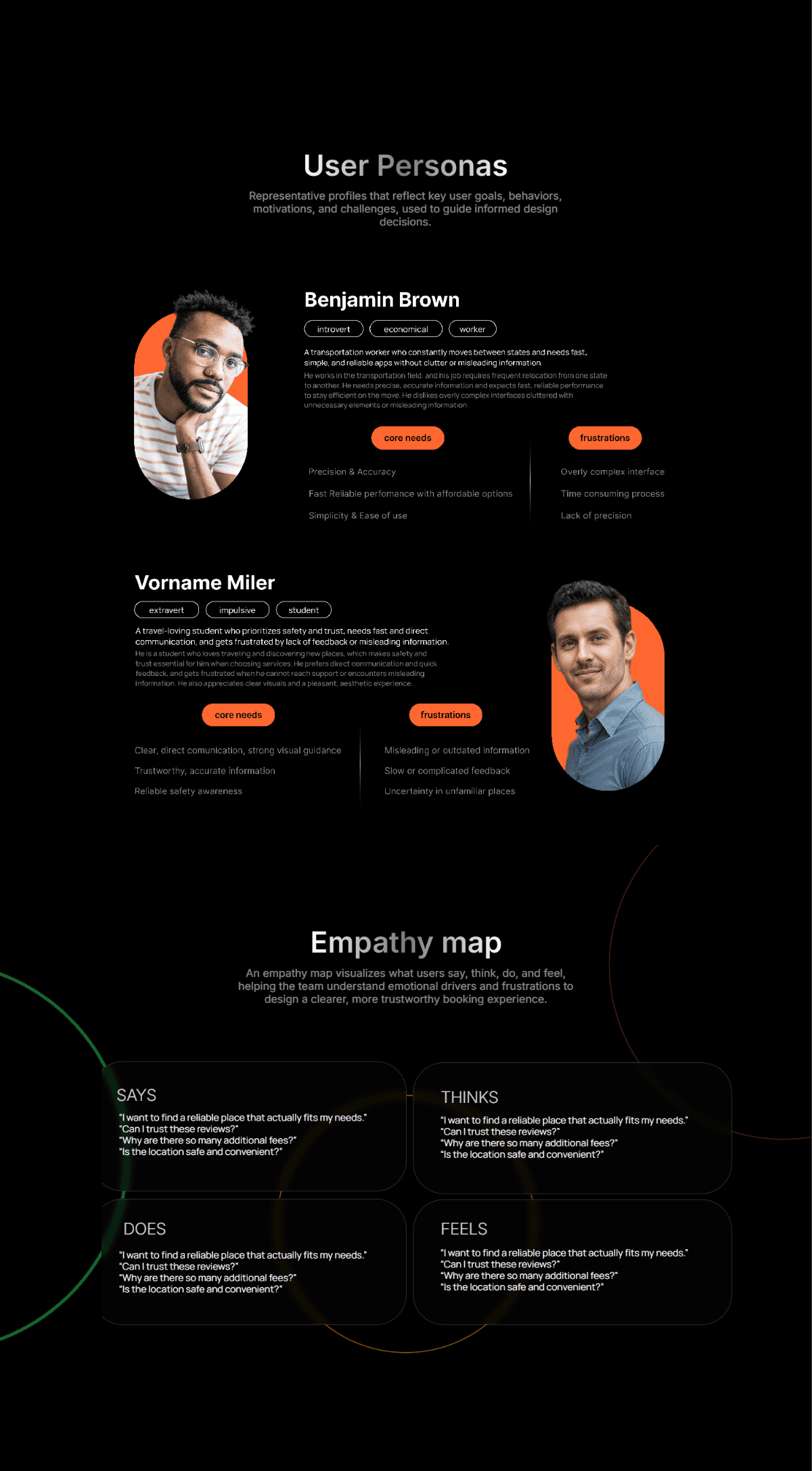 The following screens translate research findings and key insights into structured user-centric visuals.